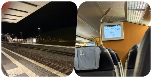 Mitten in der Nacht ging es schon los, denn um 3:00 Uhr krähte dieser schreckliche elektrische Hahn, hat dann um 4:30 Uhr das heimische Revier einfach verlassen, denn um kurz vor 5:00 Uhr musste sie nicht am Gleis 9 3/4 sondern am Gleis 1 in die Bahn steigen und es ging ab Richtung Osten, um Herrlis Familie zu besuchen.